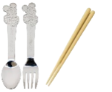 六角形で持ちやすい強化樹脂の箸は先端にすべり止め付きで、スプーンとフォークは用途に応じて使います。 |